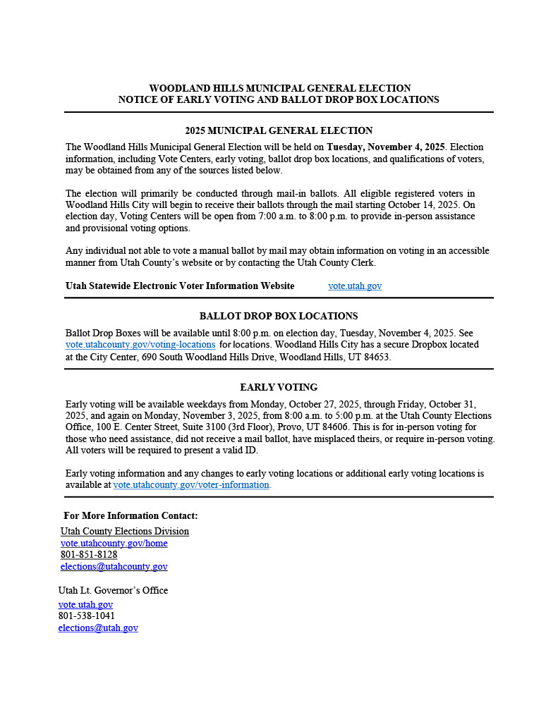 Woodland Hills Municipal Election Notice of Early Voting and Dropbox Information